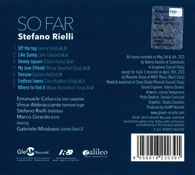 Mit „So Far” betritt Stefano Rielli zum ersten Mal als musikalischer Leader die Bühne und gibt uns einen Vorgeschmack auf seine Improvisationskünste, seine Basslinien und seine Fähigkeiten als Arrangeur. Sein Debüt ist ein Zeugnis seines zukunftsorientierten Blicks, aber auch seiner Liebe zur Postbop-Sprache in ihrer klarsten Form.