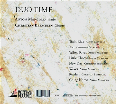 Zwei Saiteninstrumente, die sich selten begegnen – und doch klingt es, als hätten sie seit jeher miteinander geschwungen. Die Jazzharfe von Anton Mangold und die Gitarre von Christian Bekmulin entfalten auf ihrem Album Duo Time eine Sprache, die zugleich fragil und kraftvoll wirkt, irgendwo zwischen modernem Jazz, folkigen Anklängen und der lyrischen Tradition europäischer Kammermusik.