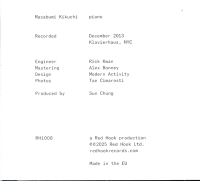 Diese außergewöhnliche Aufnahme ist der Nachfolger des von Kritikern hochgelobten Debütalbums aus dem Jahr 2021 und Fortsetzung der letzten Studioaufnahmen des verstorbenen japanischen Pianisten Masabumi Kikuchi. Die sieben Titel stammen aus denselben Sessions im Klavierhaus in New York aus dem Dezember 2013. Sie präsentiert die vielleicht intimsten und aufschlussreichsten Darbietungen einer bemerkenswerter Karriere.