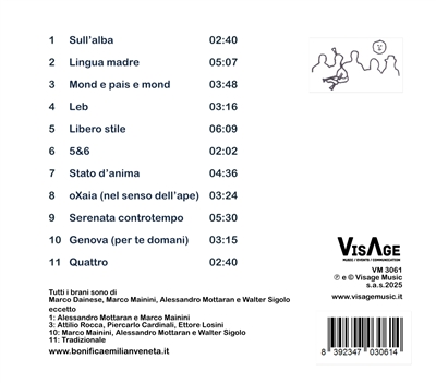 Das Booklet enthält kurze, zwei bis drei Zeilen lange Mikrogeschichten, die jeden Titel vorstellen – kurze Interpretationshilfen, die eine parallele Erzählung schaffen. Sie erzählen, wie jemand, auf einen Ruf antwortet (Sull’alba), zu einer eigenen Stimme wird (Lingua madre), seine Zeit und seine Seele besingt (Stato d’anima) und dann seine Reise durch die Stimmen anderer fortsetzt (Genova [per te domani]).
